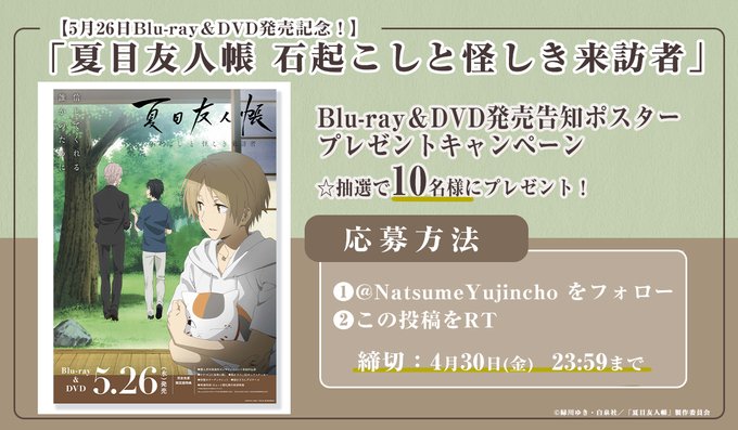 · 『夏目友人帳 石起こしと怪しき来訪者』 配信開始日21年5月26日(水) 価格各440円(税込)/視聴期限:5日間 視聴ページ https//videounextjp/title/SID?rid=PR · 見ている者の心揺さぶるアニメ「夏目友人帳」シリーズの 期間限定で21年1月16日より上映されていたアニメ映画に「夏目友人帳 石起こしと怪しき来訪者」 があります。 この作品が 21年5月26日にBlurayとDVDとして発売される ので、気になっている方も多くいらっしゃるのではないでしょうか。1321 · 『夏目友人帳 石起こしと怪しき来訪者』を無料で観たい!せっかくなら「自分に合った動画配信サービス」を使いたい!このような願望を実現させます。本記事では、映画『夏目友人帳 石起こしと怪しき来訪者』を無料で観る方法を紹介します。