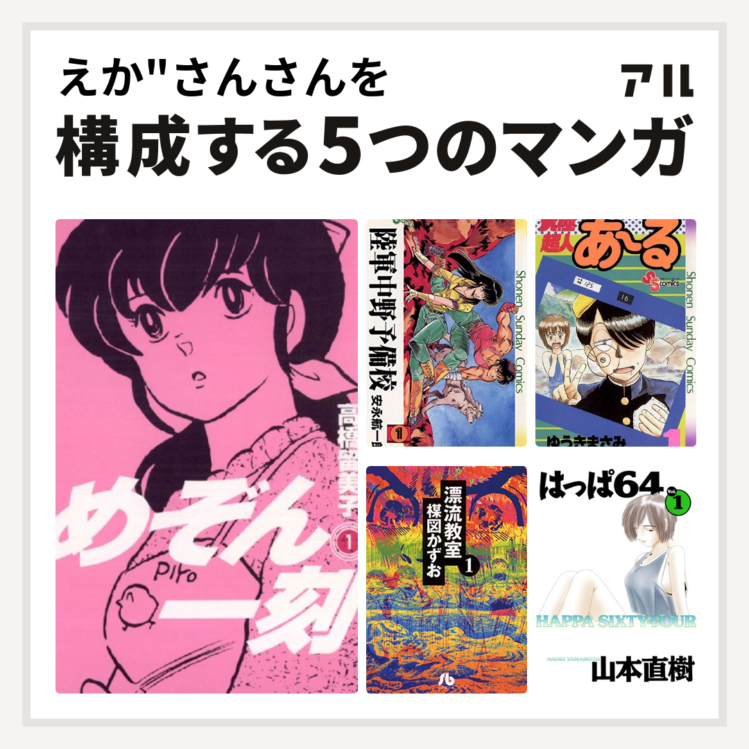 えか さんさんを構成するマンガはめぞん一刻 陸軍中野予備校 究極超人あ る 漂流教室 はっぱ64 私を構成する5つのマンガ アル